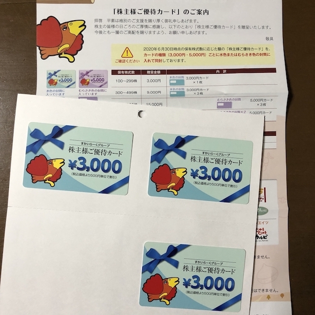 株式会社すかいらーくホールディングスの株主優待がとどきました。優待カードです。
