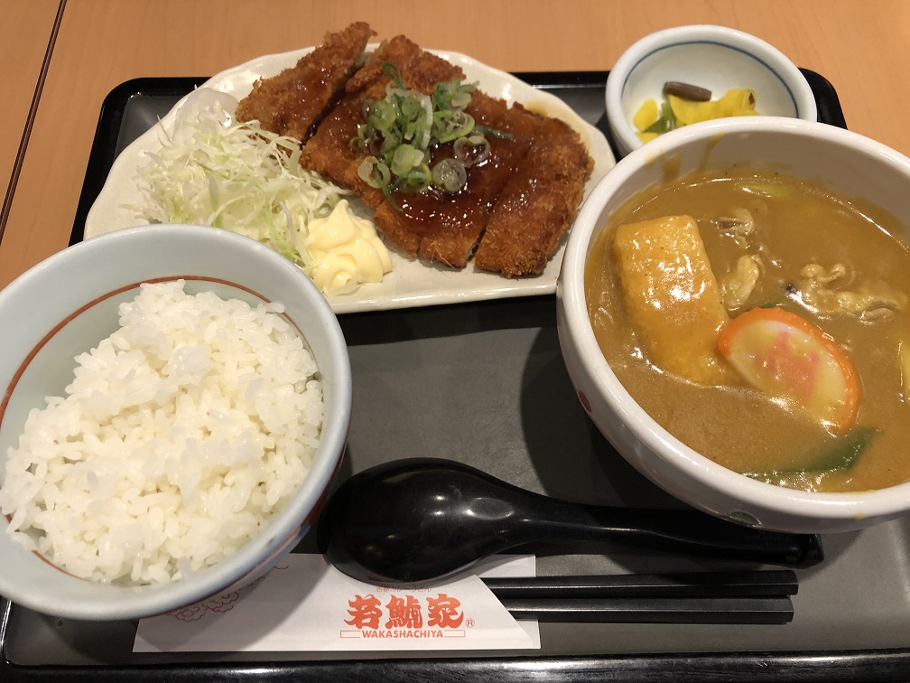 カレーうどんもですが、ご飯と後ろのとんかつもボリューム満点ですね