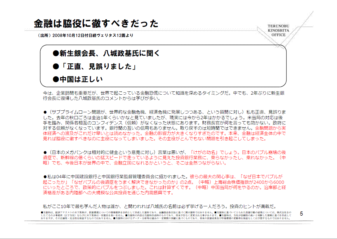 数年後、2008年10月が大底であったと振り返ることができると考える。