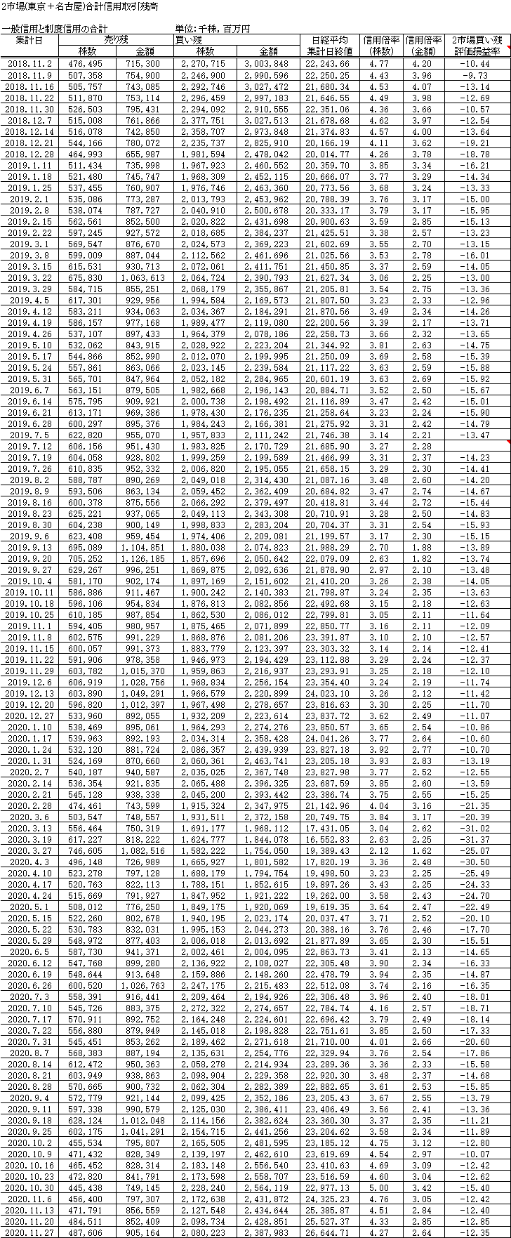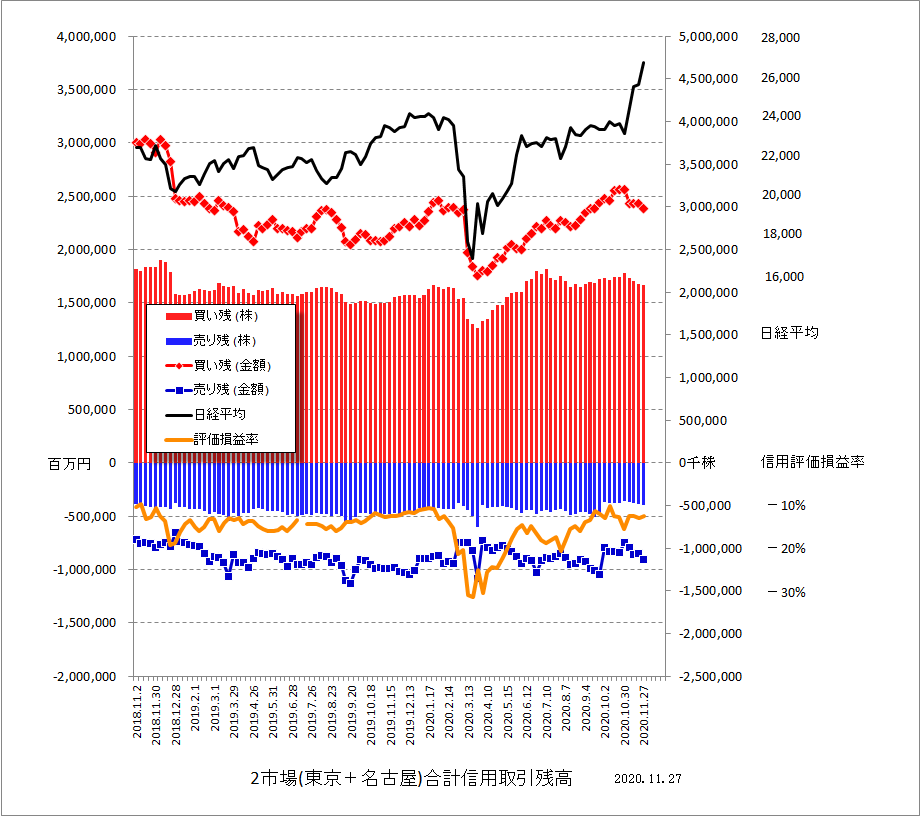 信用取引残高のグラフ(R2.11.27現在)