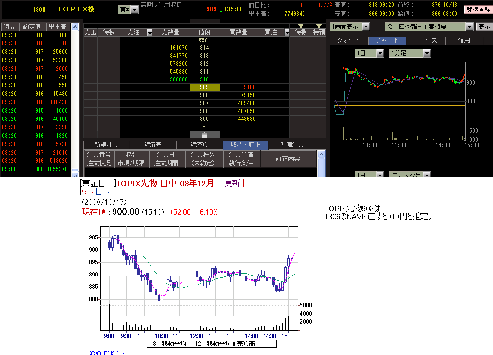 先物903.00に対応する1306のNAVは919円と推定。