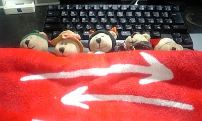 ↑プチテッポウ君睡眠イメージ(東京証券取引所タオル(笑))