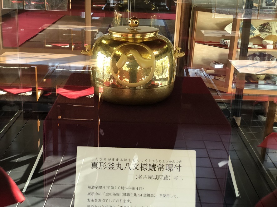 金の茶釜を見てお抹茶をいただく。