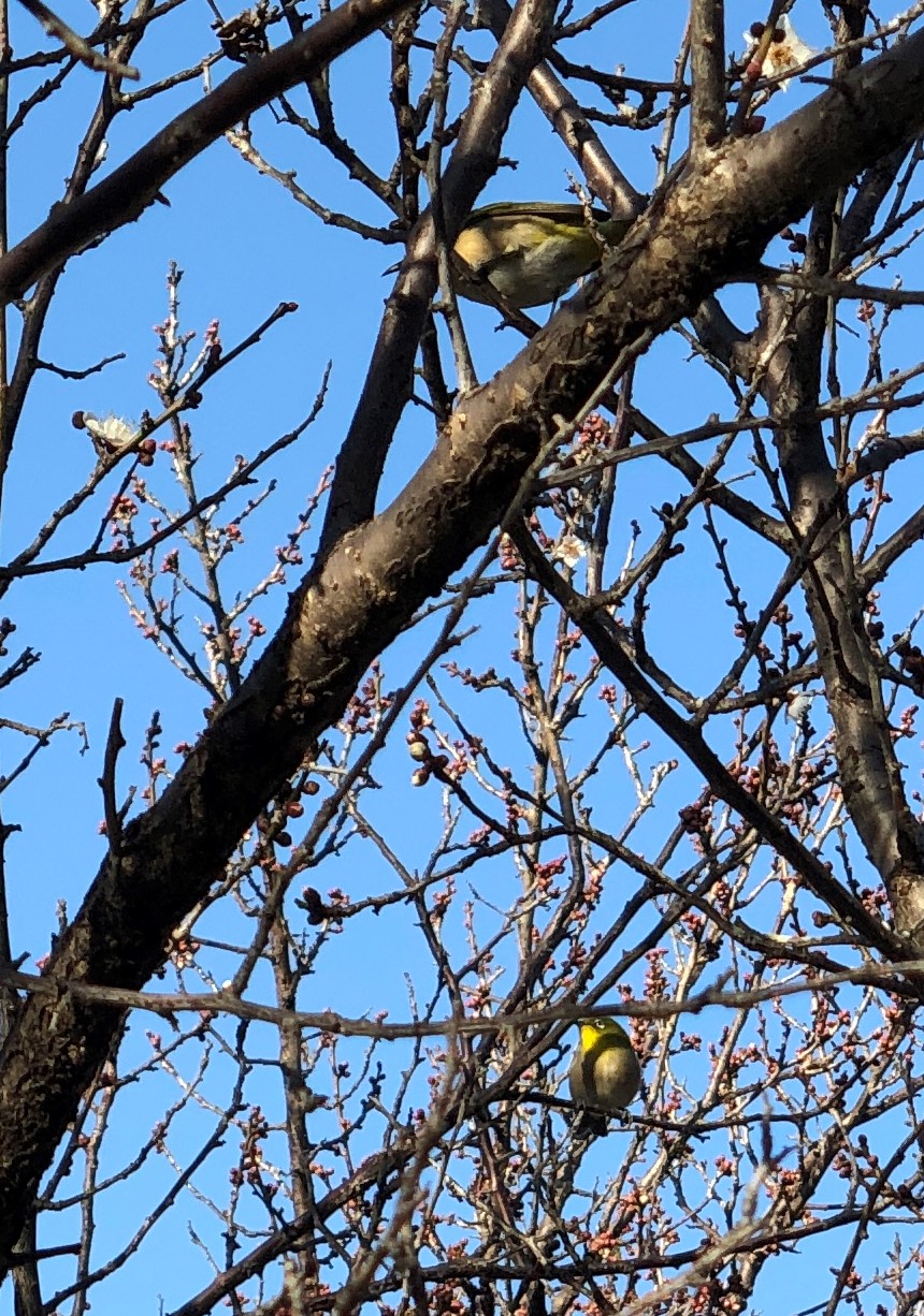 メジロが飛んできて、目の前にとまった。