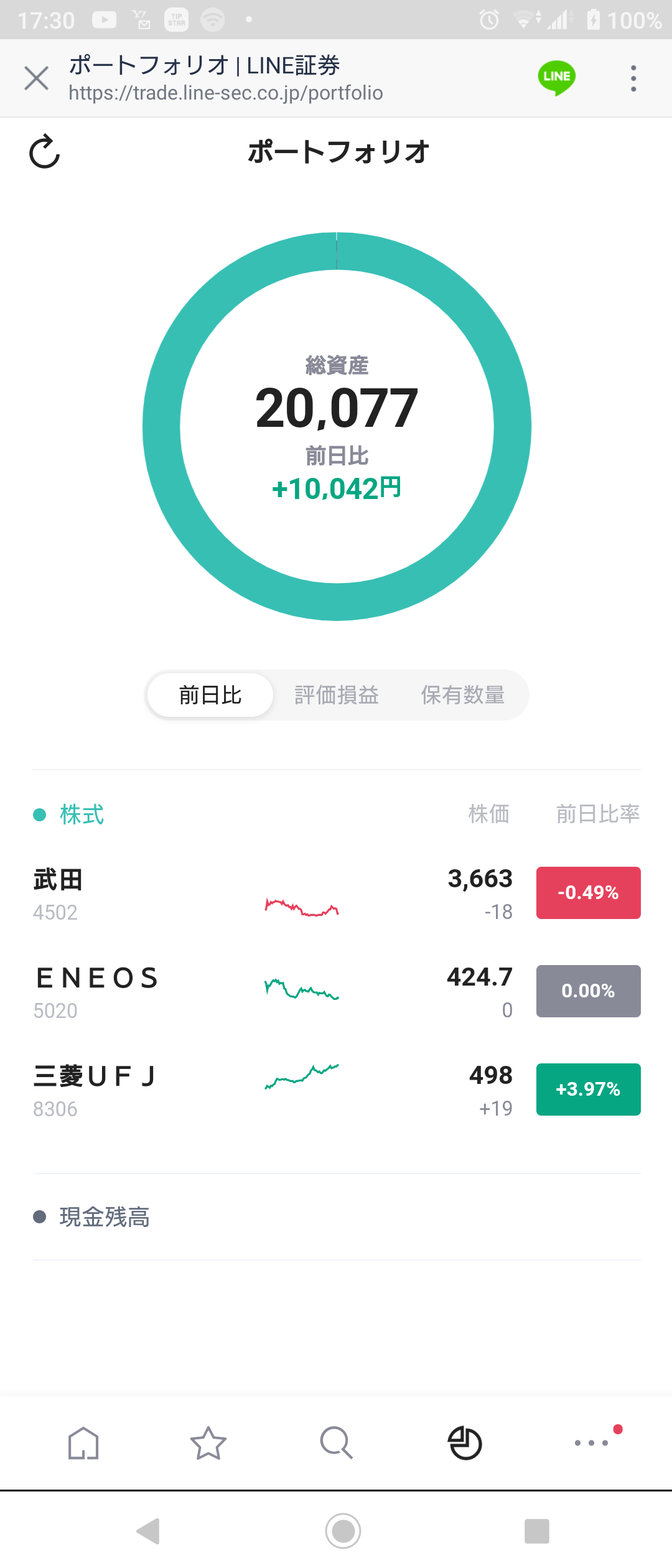 今日のアフタヌーンセールでは、2万円で、武田、ENEOS、UFJ銀行を買いました。
