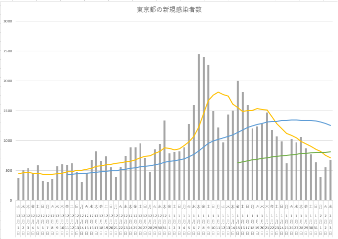 棒グラフは日々の新規感染者数。