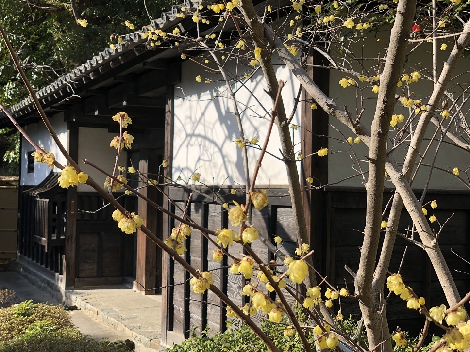 ソシンロウバイと梅が少し咲いています。