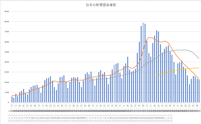 ※翌朝(グラフじゃないところだけど)日本の患者数を修正。