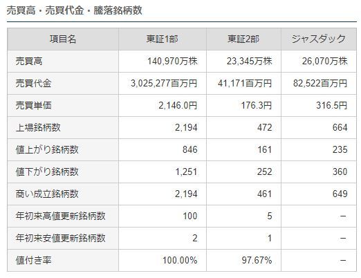 項目名東証1部上場銘柄数2,194値上がり銘柄数846値下がり銘柄数1,251