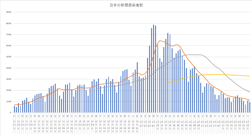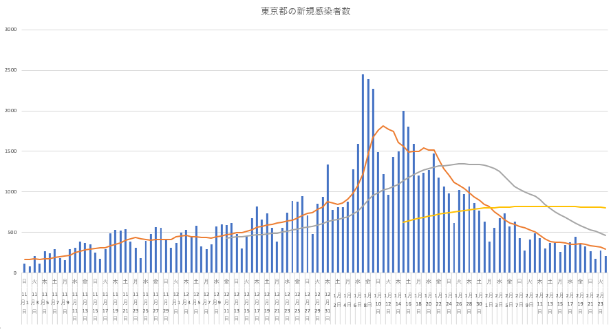 新規感染者数は昨年11月初旬までの3桁に戻ってきたが、