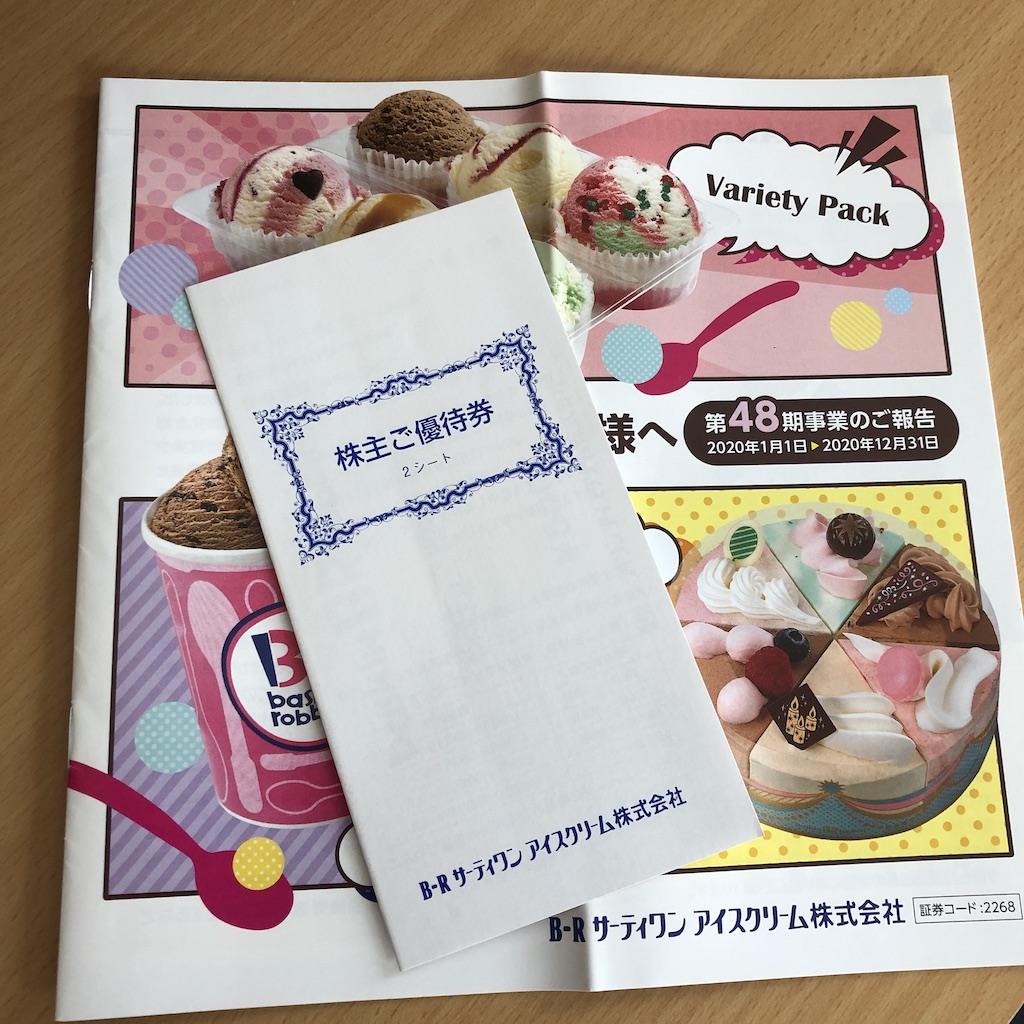 ということで今年は株主総会には行きませんでしたが、サーティワンアイスクリームの株主優待券が届きました。