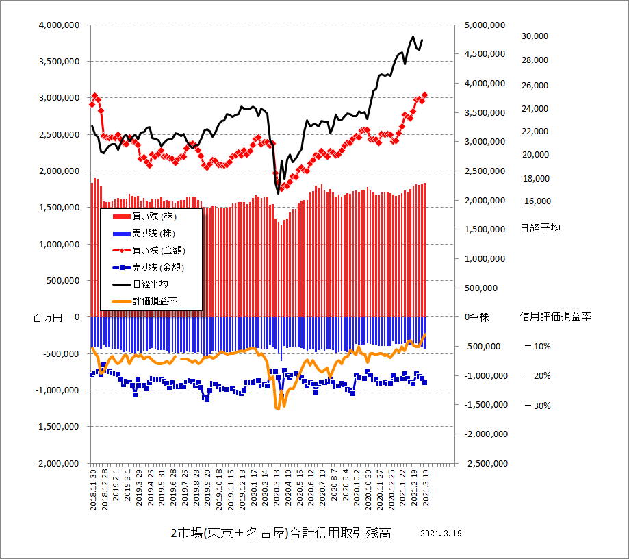 と前置きはそのくらいにして、3/19現在の信用取引残高のグラフです。