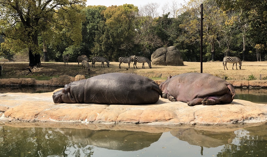 滅茶ひろい。カバなんてとなりのシマウマに行くのではないかというくらい。