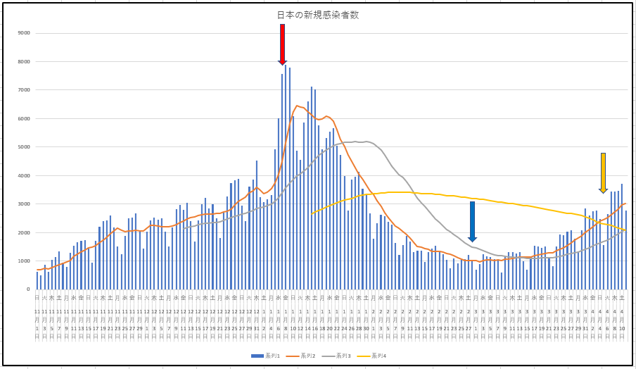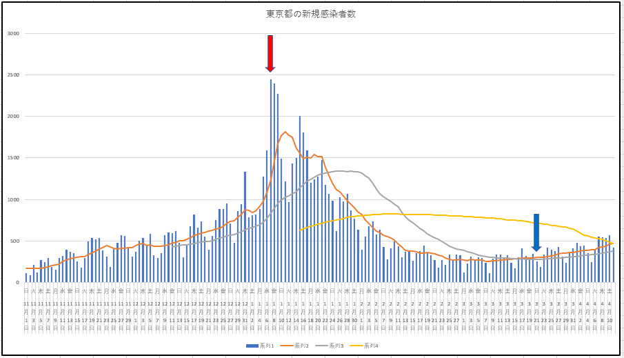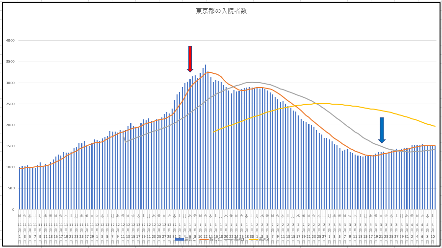 いつものように東京都の新規と入院患者数の推移を載せるが。ここに書いていないデータで、重症者は、東京都はずっと40人前後で推移しているのに大阪は203人だそうだ。日本全体でも520人なのに、どうにかしてるぜ、あそこ。