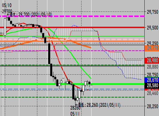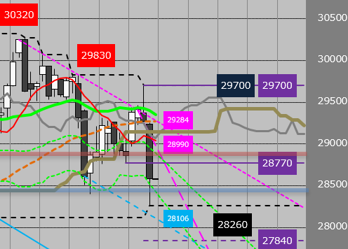 想定レンジは28900~28260、本日は昨日の孕み足となることを想定