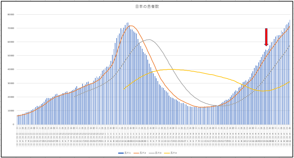 12日までの日本の新規と患者数の推移。福岡と愛知と北海道がピンチのようだ。