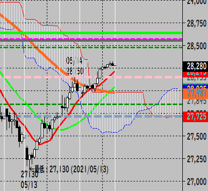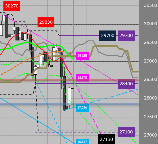 (日足「38.2戻し」なので、一旦28000付近まで押す可能性有り)