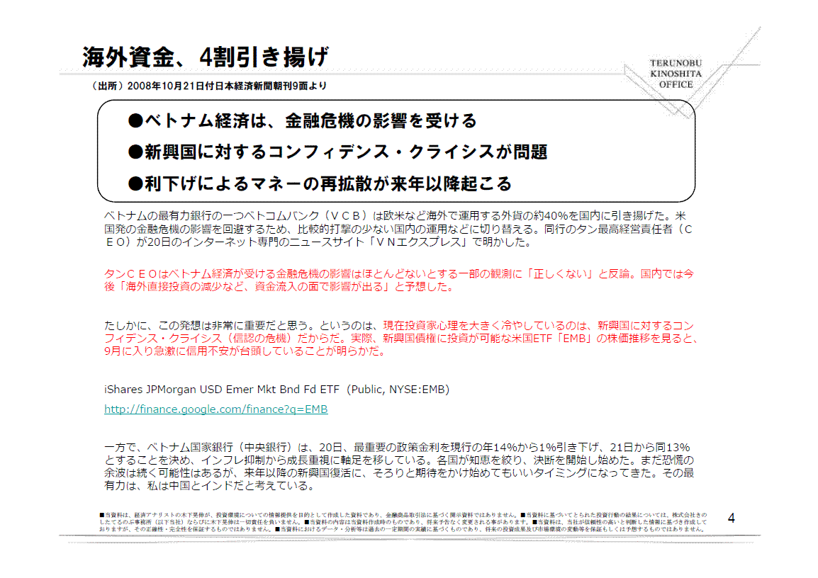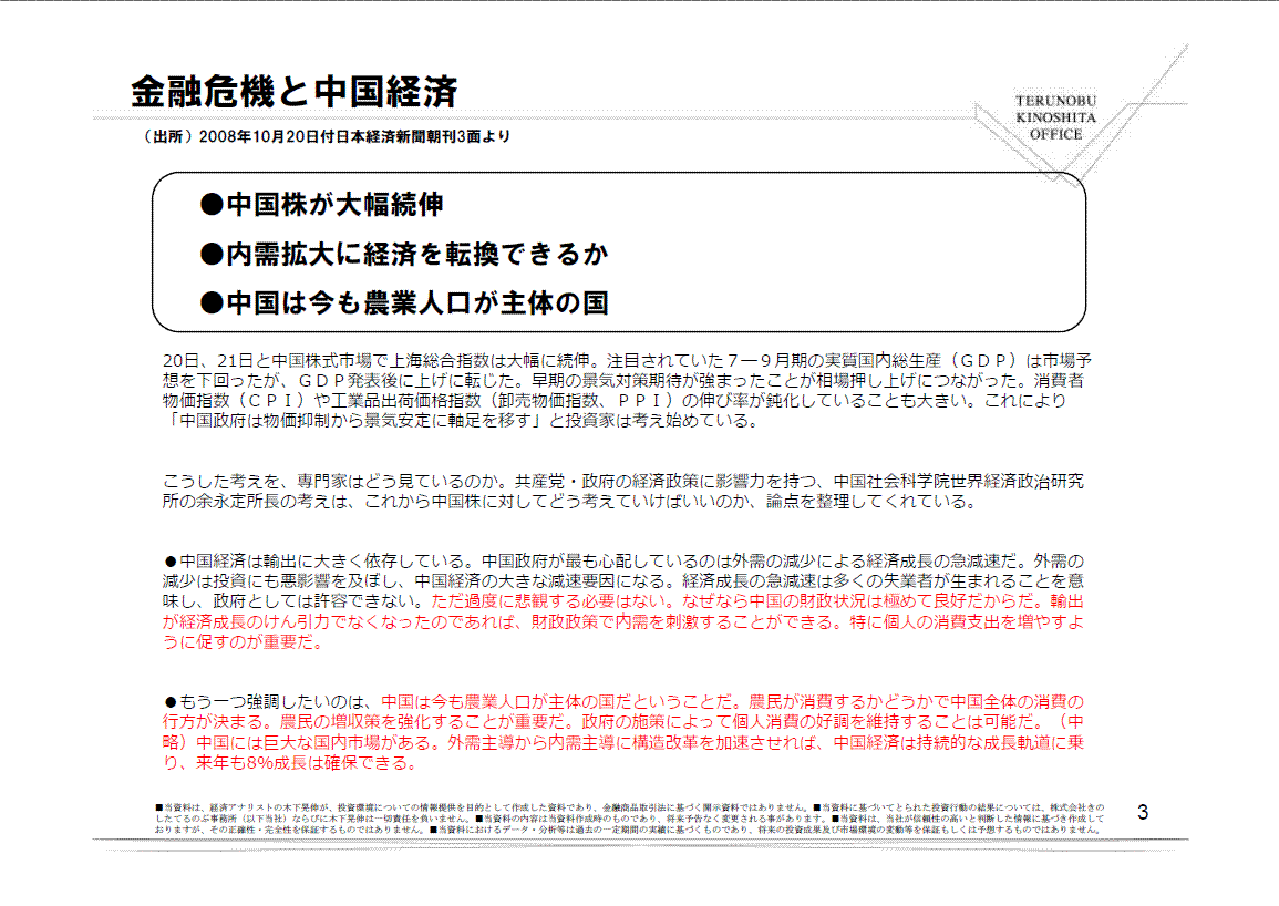 まだ恐慌の余波は続く可能性はあるが、来年以降の新興国復活に、