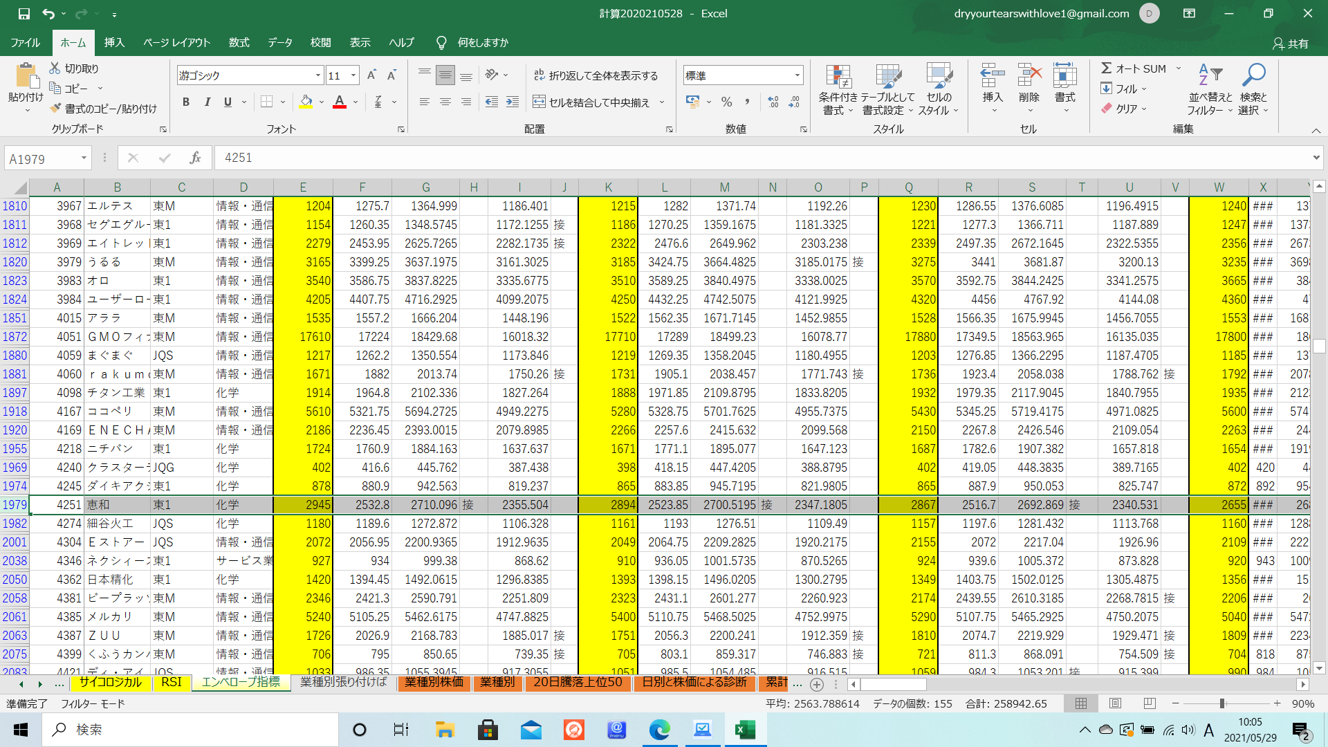 全銘柄の中から、恵和のチャート形成を探すのは大変です。