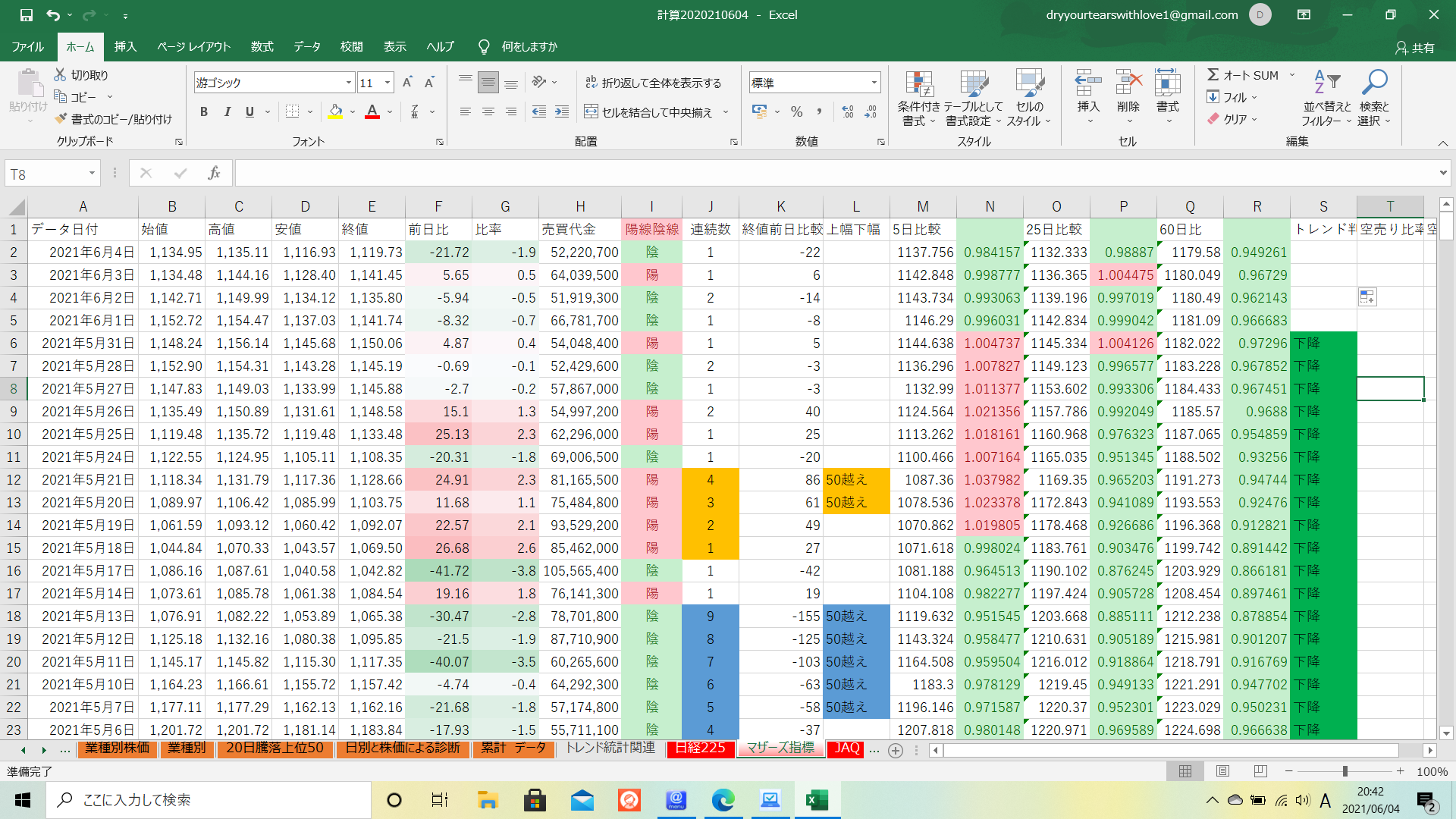 終値ベースで5日線、25日線、60日線を上回ることは少なかったです。