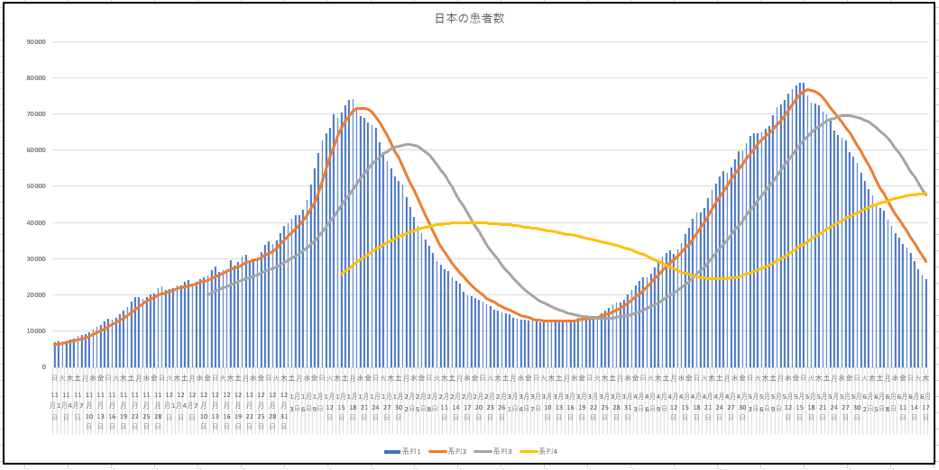 ただ死者に関しては全体の95%を占める高齢者の死者が減るから、現在の毎日70~80人の死者が数人程度に減るような気がします。