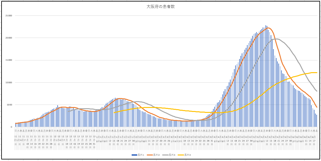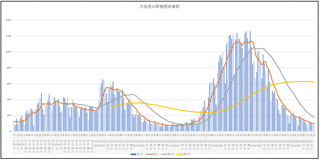 東京都と大阪府の今日までの新規感染者数の推移。ちょっと微妙です。