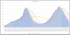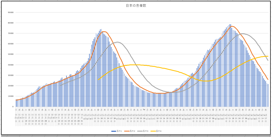 同じく、日本全国の新規と現患者数の推移。