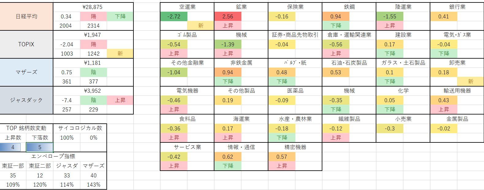 業種や個別銘柄の状況で相場が