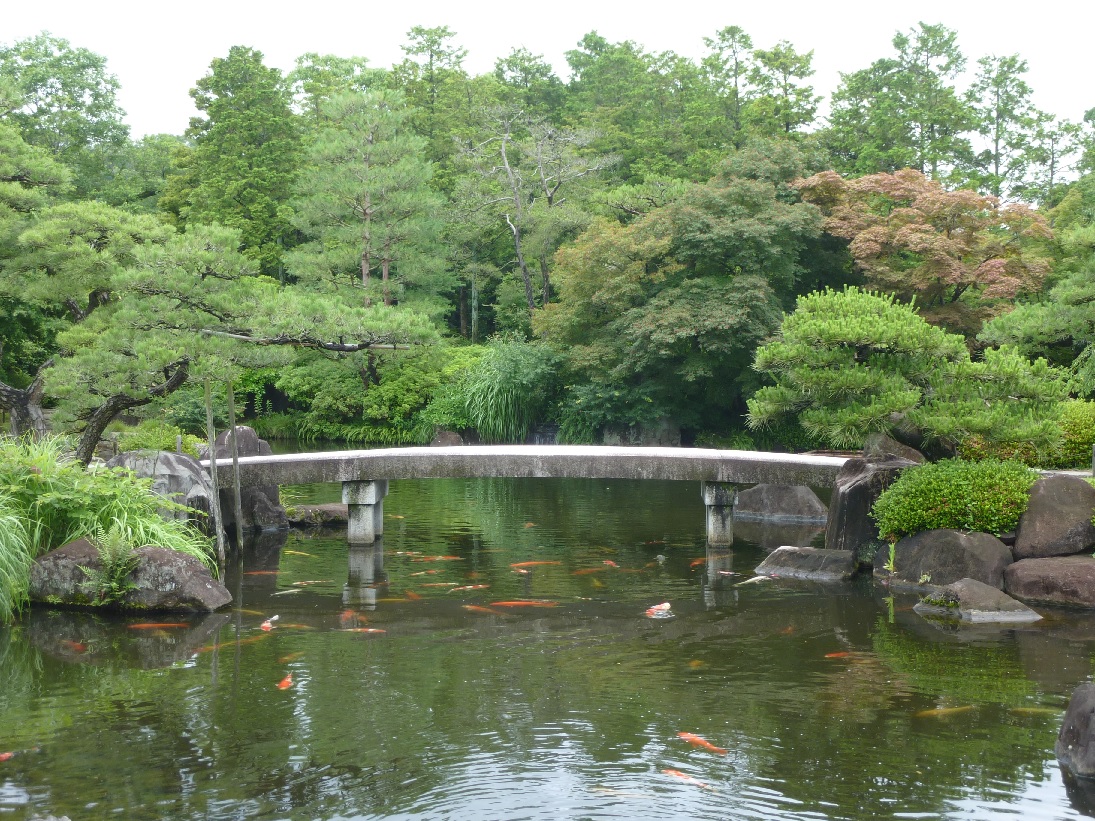 世界遺産である、国宝姫路城を借景とした日本庭園です
