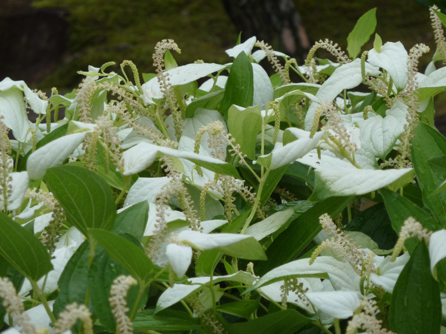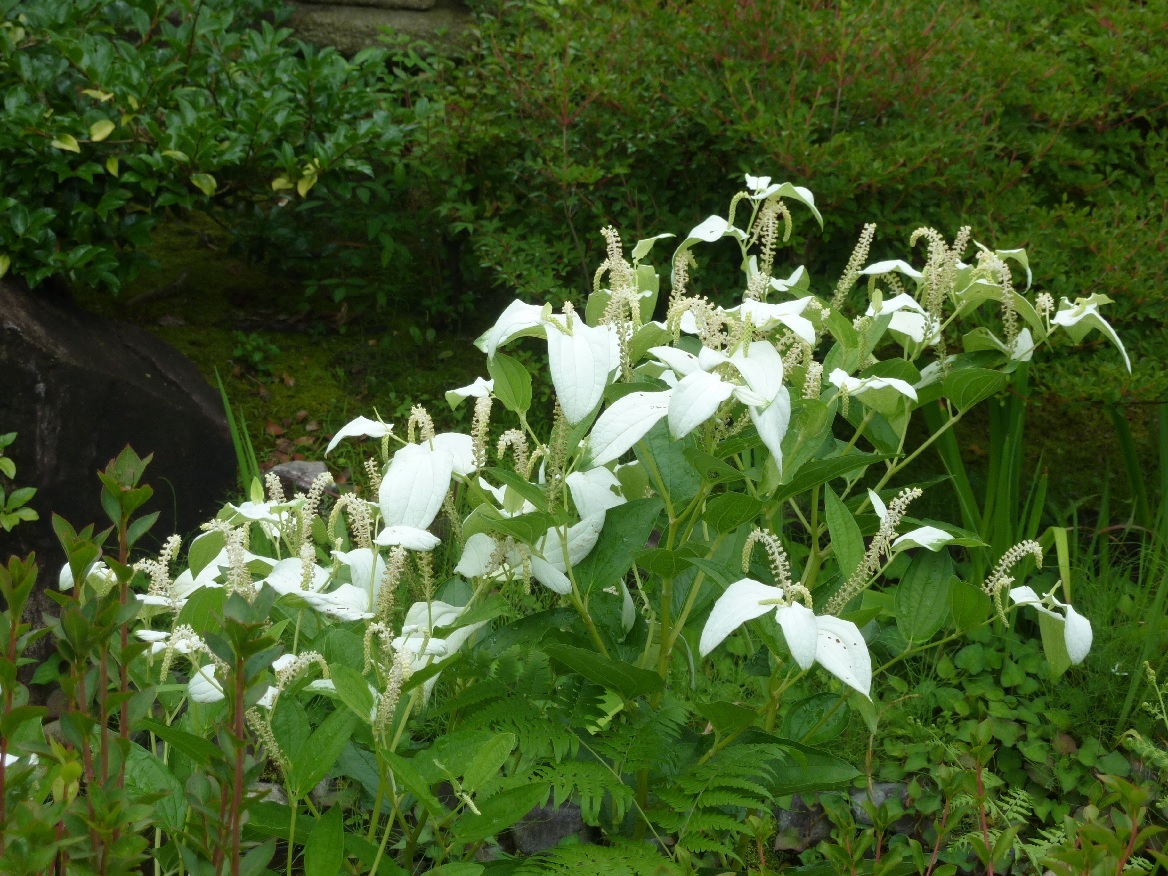 ちょうどこの時期に花を咲かせる、ドクダミ科の半夏生(はんげしょう)。