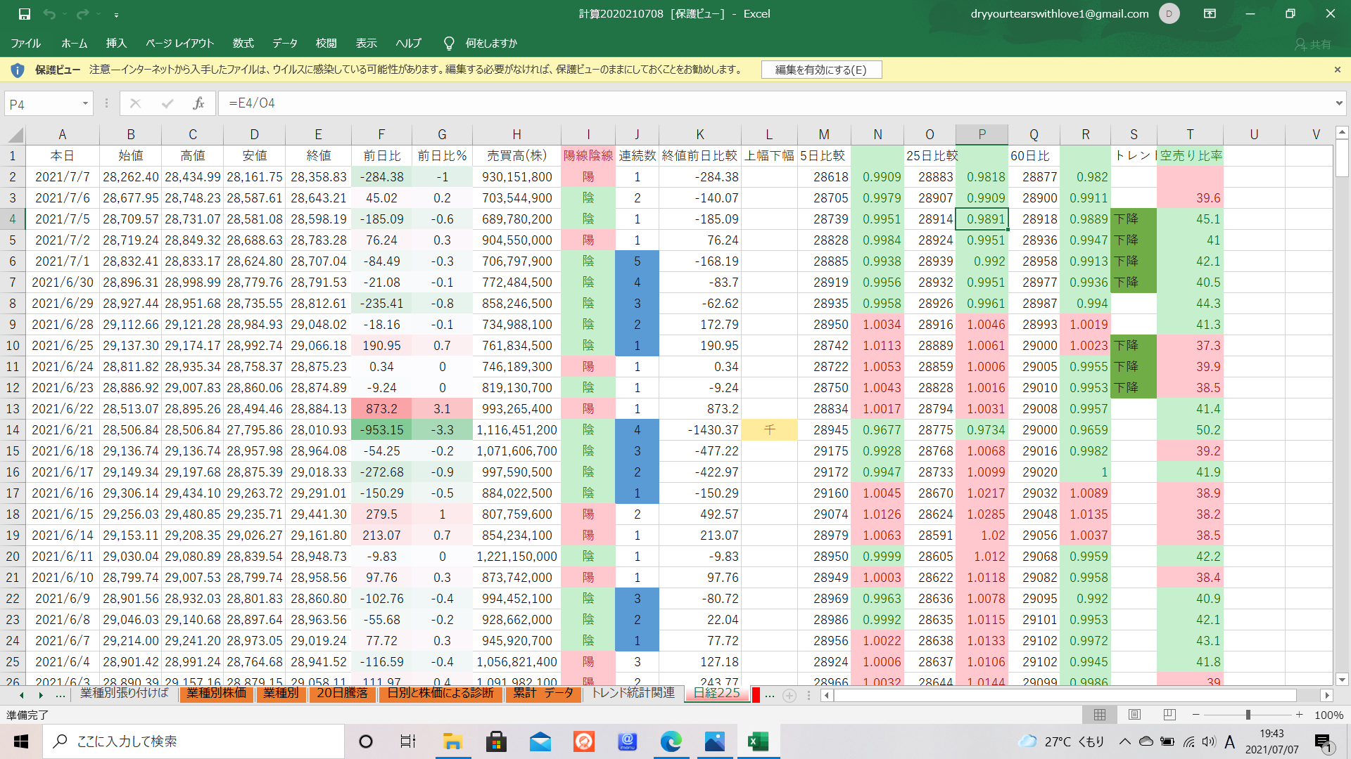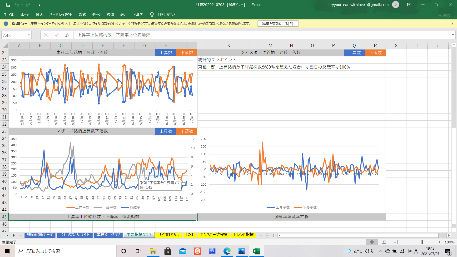 上昇率上位銘柄数・下降率上位銘柄数変動シートという