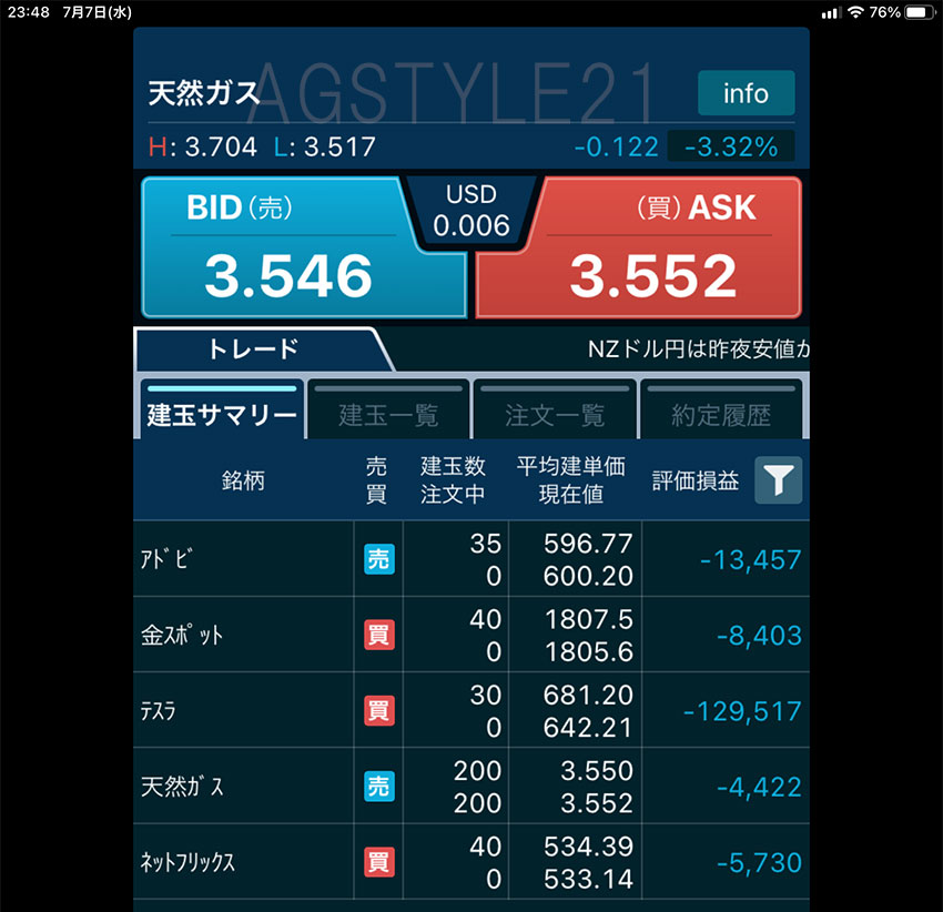 儲け損ねたと言いながら天然ガスと原油ではわずか数日で100万円以上儲けさせていただきました。