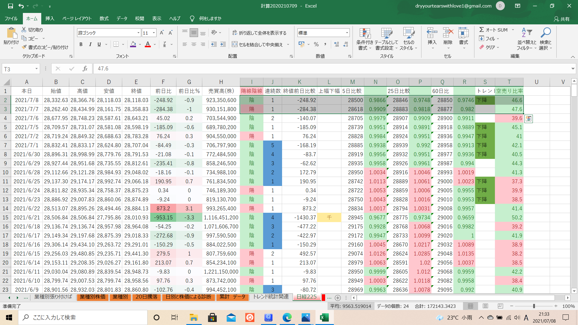 また二枚目左下を見ていただくとわかるのですが全面安や全面高を前もって見極めるために使うシートとなります。