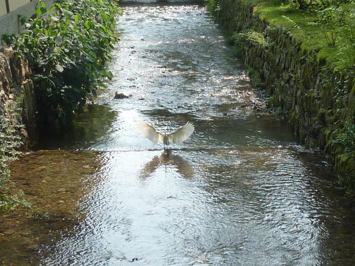 コサギが羽を広げてこちらに進みよる姿だけで、