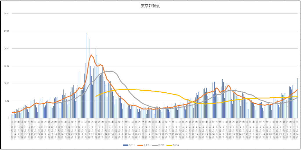 どうした。東京都!というぐらい新規感染者が増えてきましたね。これではオリンピックの無観客もやむなしか。。。せめてワクチン接種者を入れるとか選手の家族ぐらいは入れてやりたいですね。まったく0にしなくてもいいと思うのですが。マスコミが騒ぎすぎだと思います。