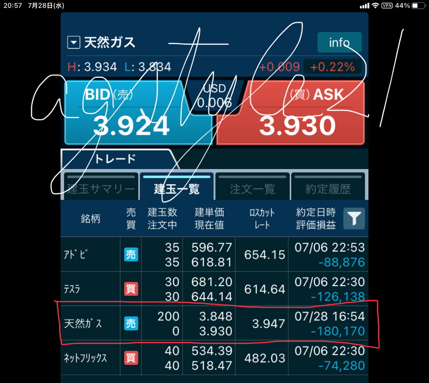いや~、天然ガスは連日の高騰でどこまで上がるかと思っていましたが、昨日はまさかの下落でエライ目に遭ってしまいました。