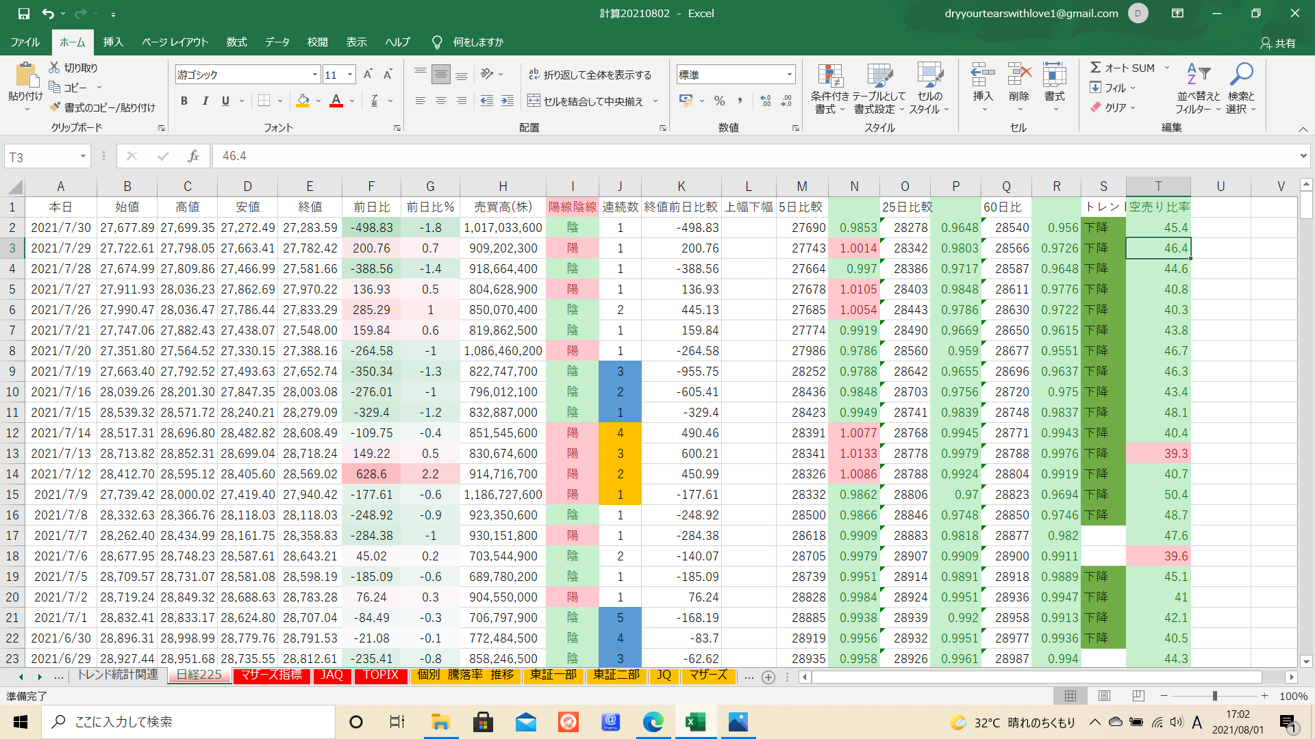 しかし、足元を見てみると日経は15日間下降トレンド継続中