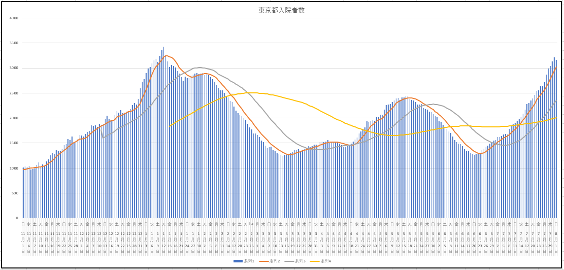 新規が3000人と聞いて、あら少ないね、と思ってしまう。