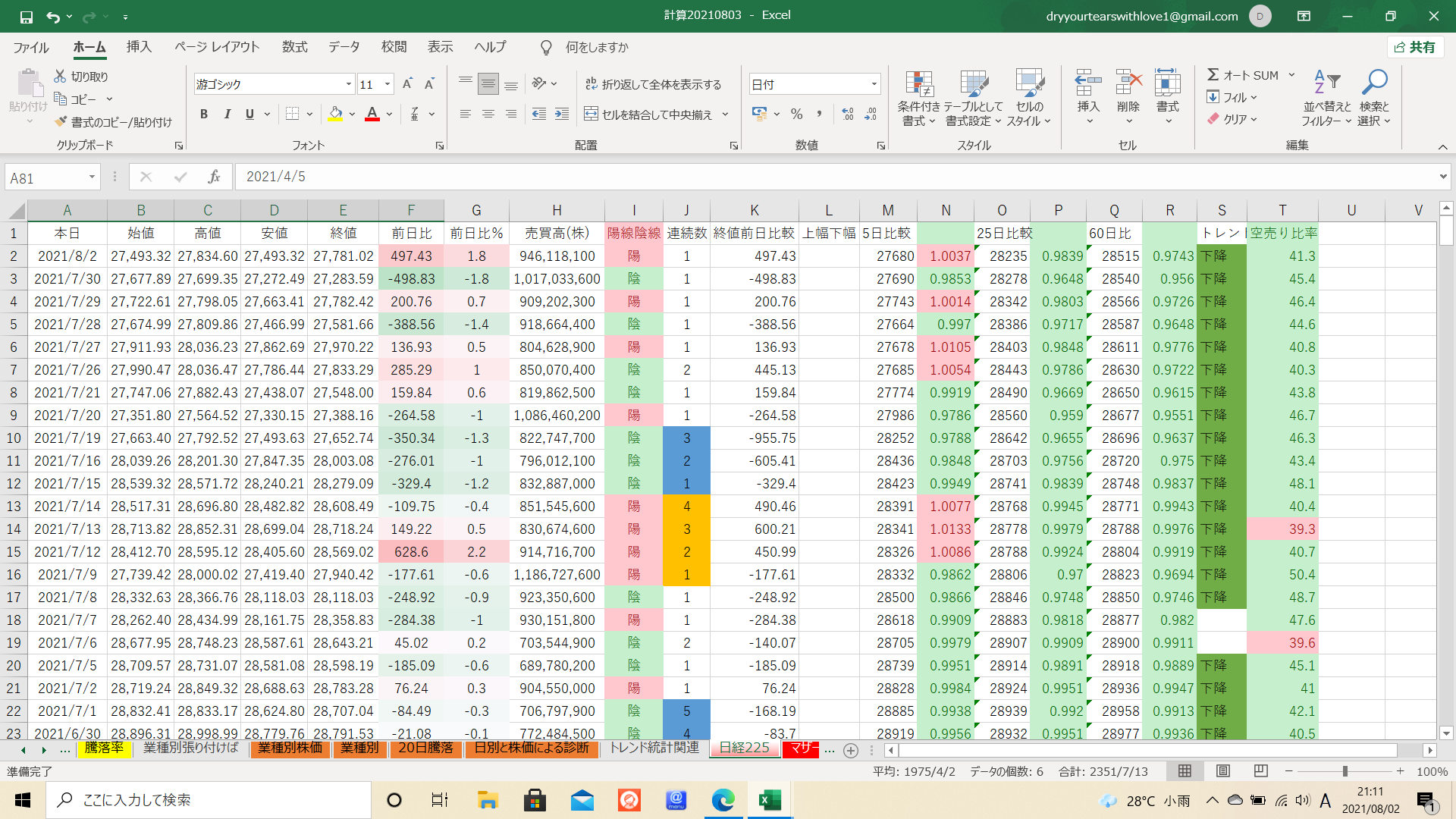 ダウとナスダックがマイナスだったので強気にはイケませんでしたが。