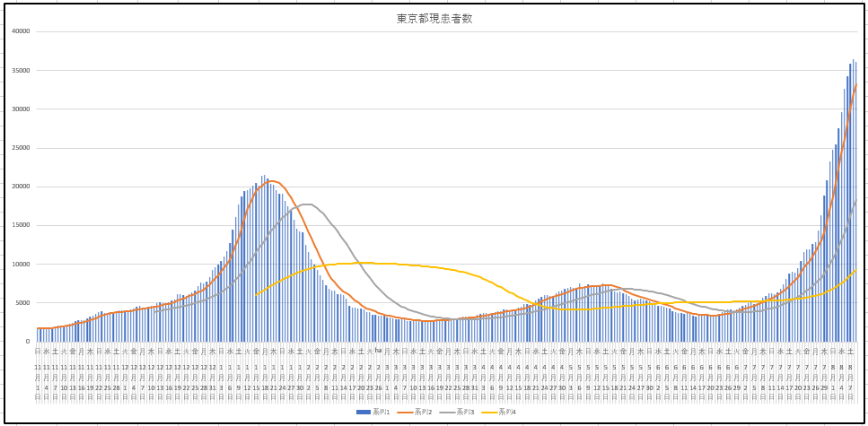 というわけで久しぶりに東京都の新規感染、入院患者数、