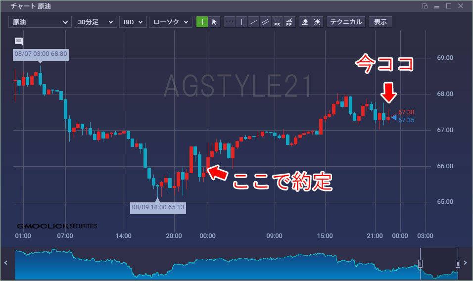 昨日再度空売りをした原油金スポットの続きです。