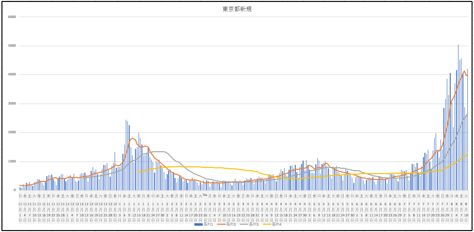 今日も先物がいい感じに上がってますね。ちっとだけ期待しちゃおうかな。ところで新規感染者数を更新している県が多くなってきましたね。我が静岡県もそうですが弥吉どのの三重県も更新してます。そのせいで蔓延防止策として飲食店は夜8時まででラストオーダーが7時半まで。つまり7時半前に入らないと断られてしまいます。。ですがそのせいで人が密集しています。これって逆効果なのではないかと疑問ですね。。