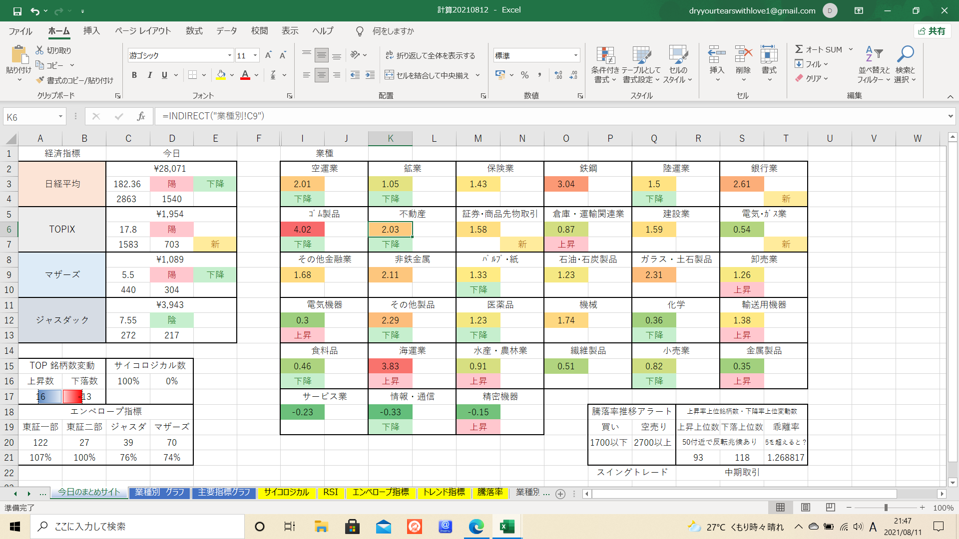 上昇トレンドを示している業種が増えてまいりました。