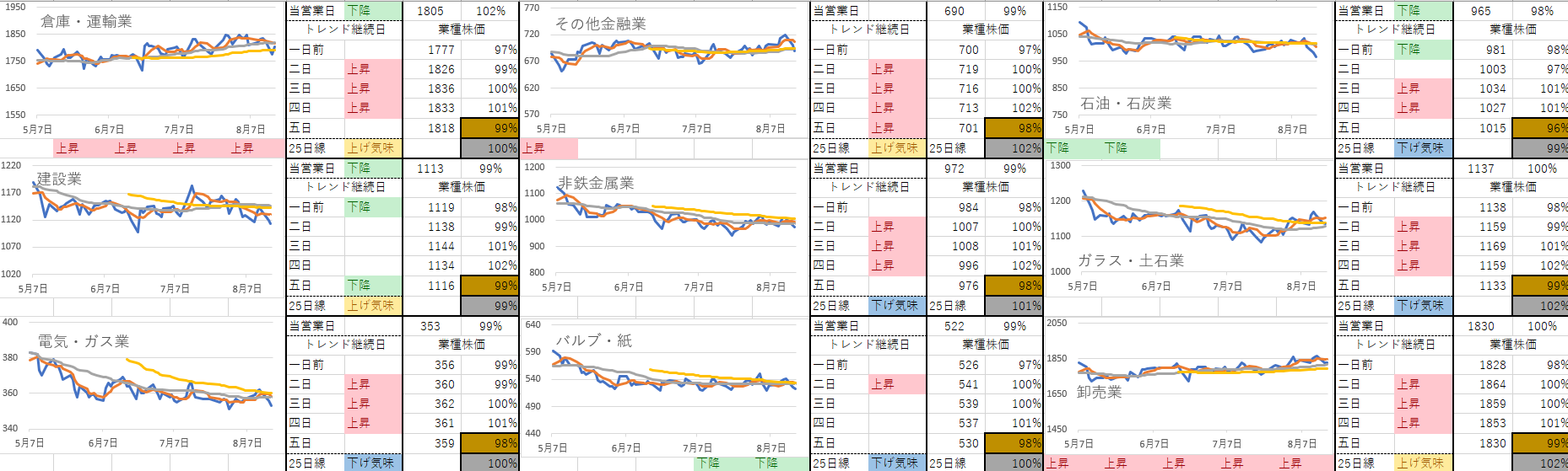海運、鉄鋼がそろって上昇トレンドになりました。