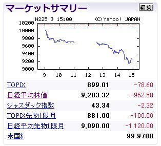 日経平均株価は、一日だけで952円下げました。