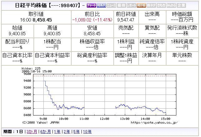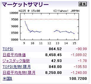 1089円2銭安の8458円45銭 11.41パーセントの下落率で、過去2番目。