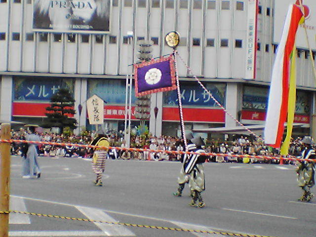 信長隊の行列では、1日目は、笹島交差点、栄え交差点で