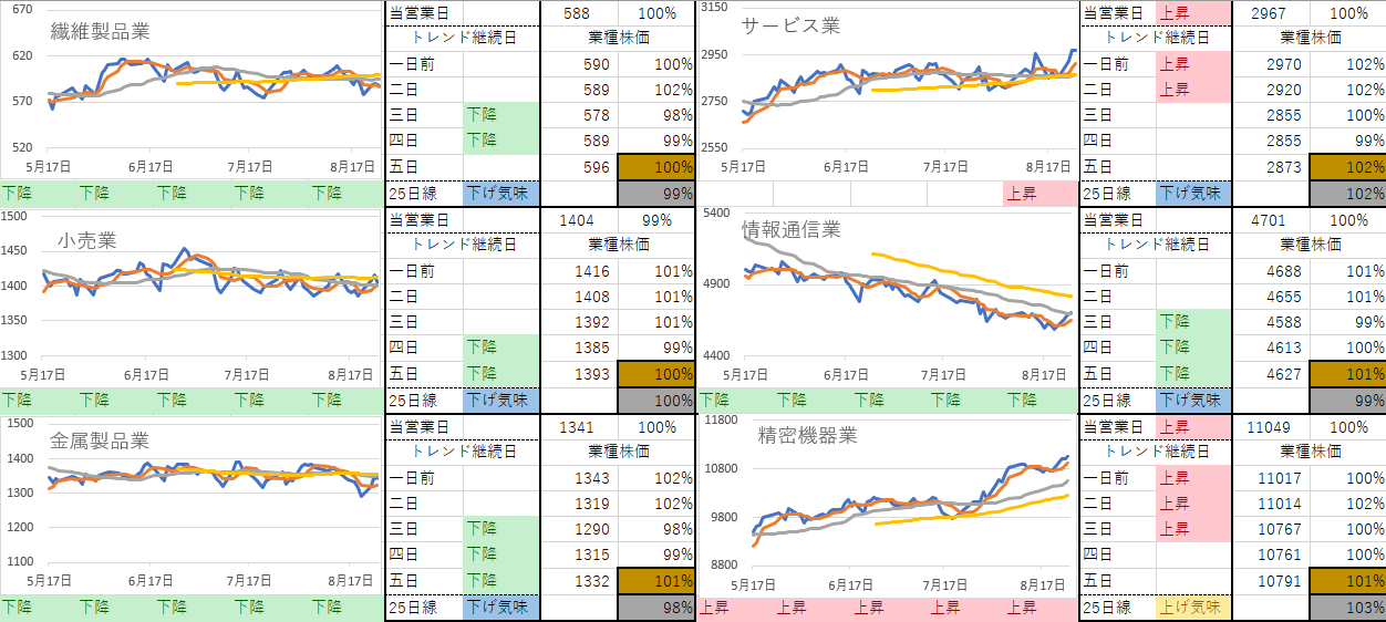 下降トレンド業種が非常に多いのは変わりません。