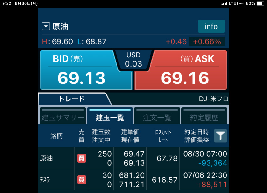 ここ最近のマイナスを取り返すべく、またここ2日は勝っているので調子に乗って、また高橋ダン氏の動画で「原油は騰がる!」と言っているので一発行ってみることにした。