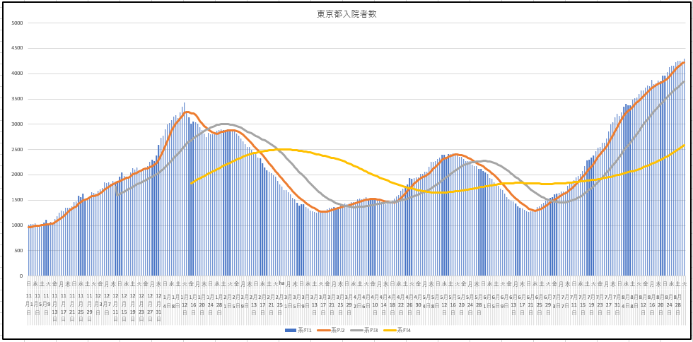 グラフは東京都の昨年11月から8月末までの新規感染、